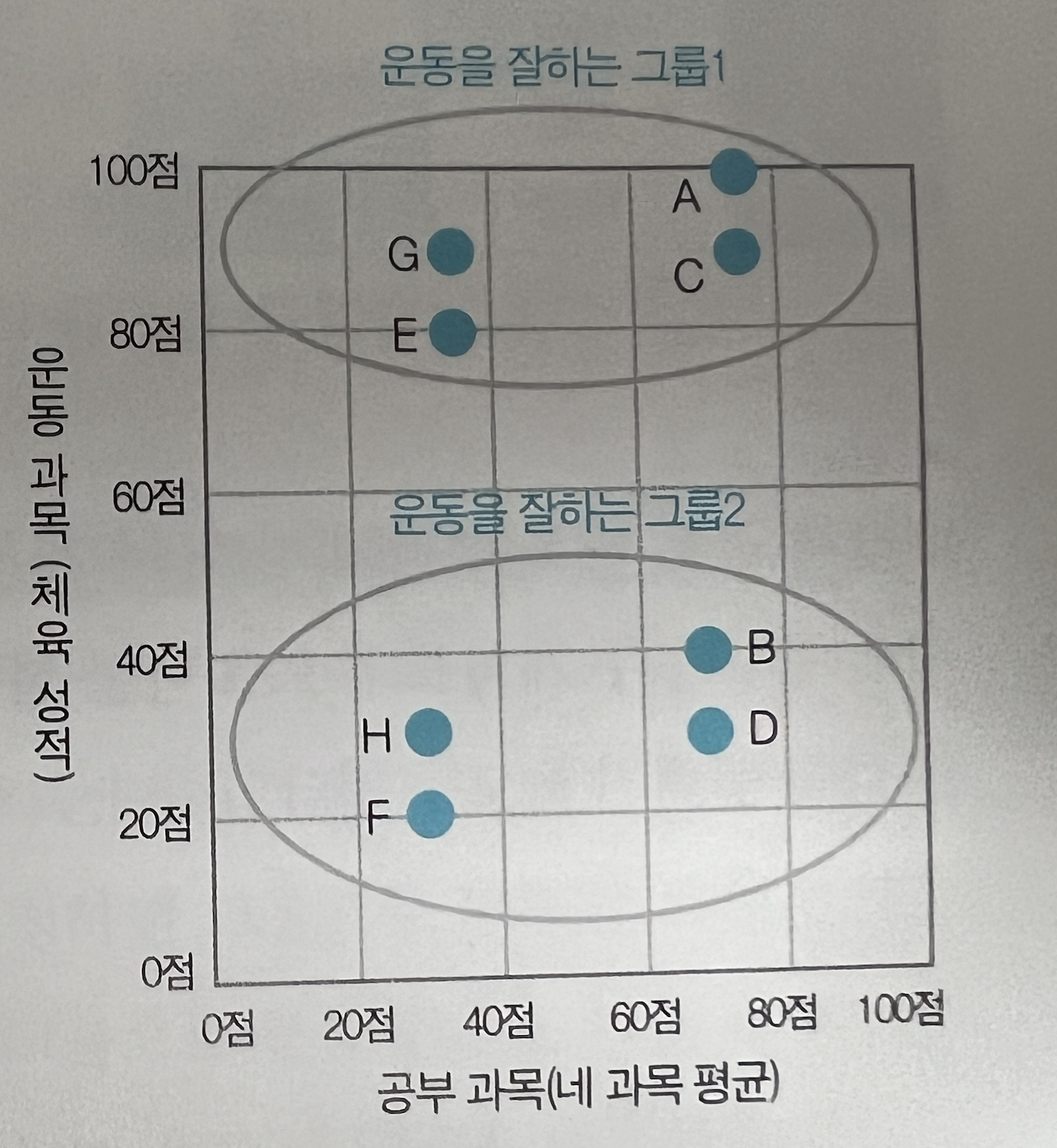 위 표에서 A~H 학생을 분류해 본다면 어떻게 할 수 있을까?