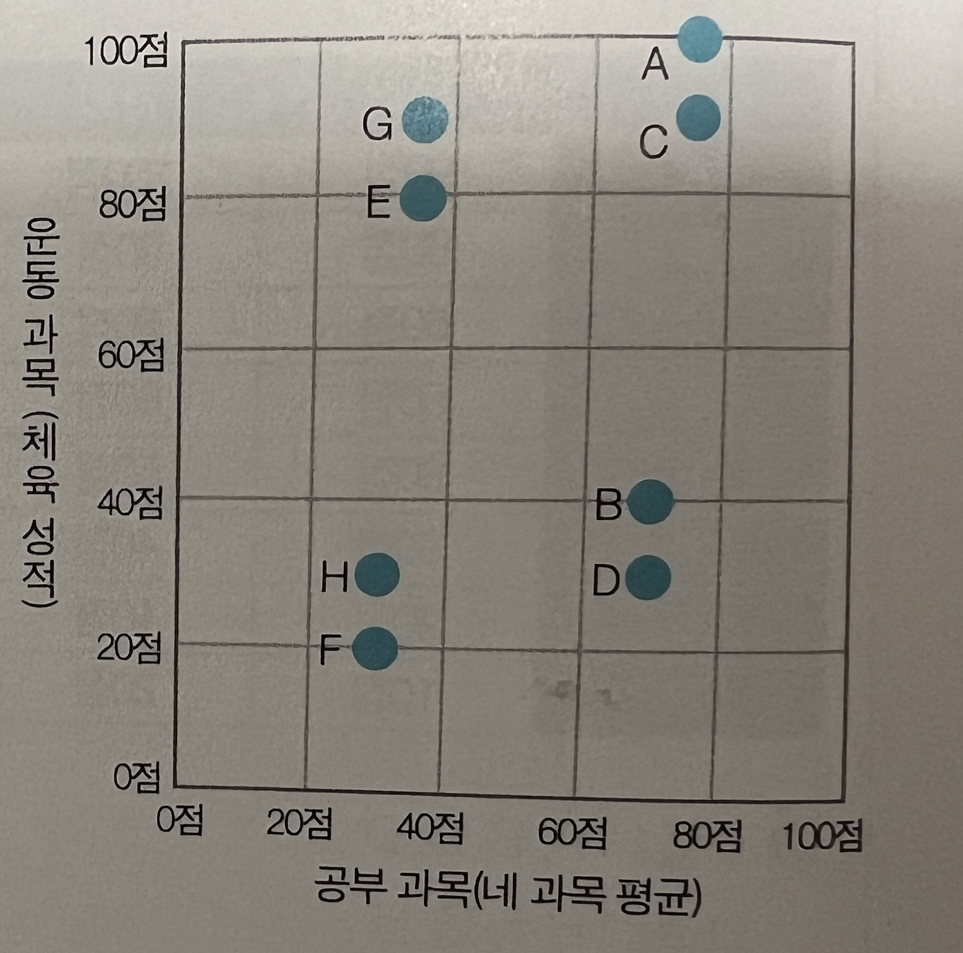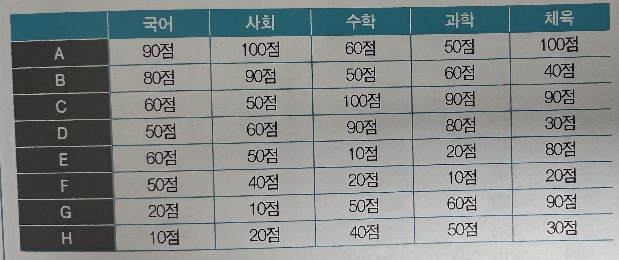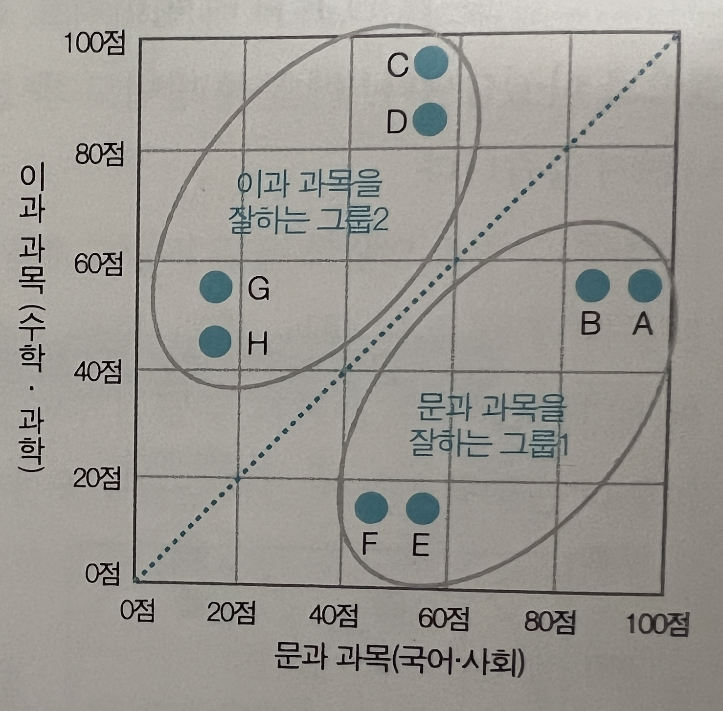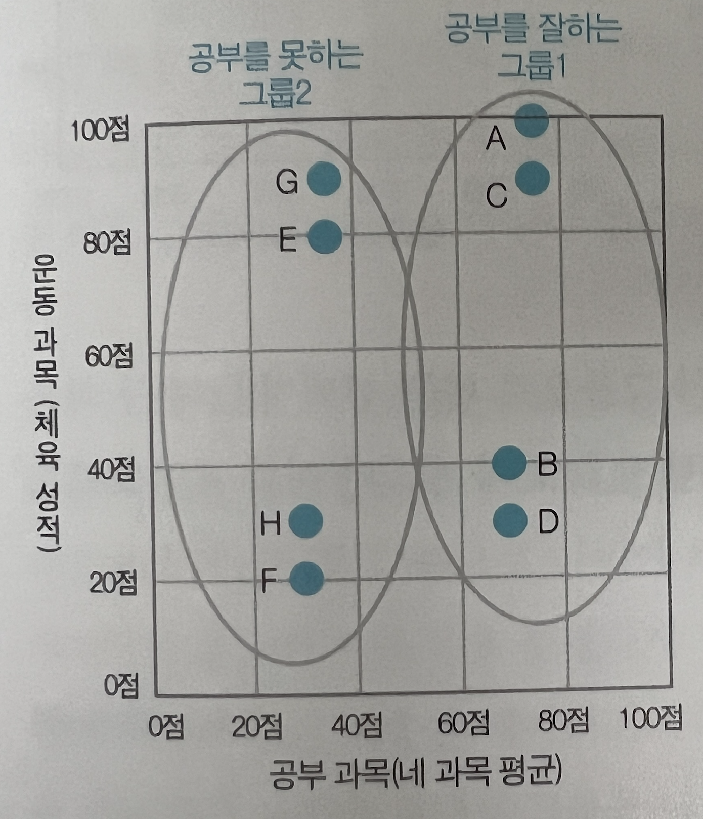 위 표에서 A~H 학생을 분류해 본다면 어떻게 할 수 있을까?
