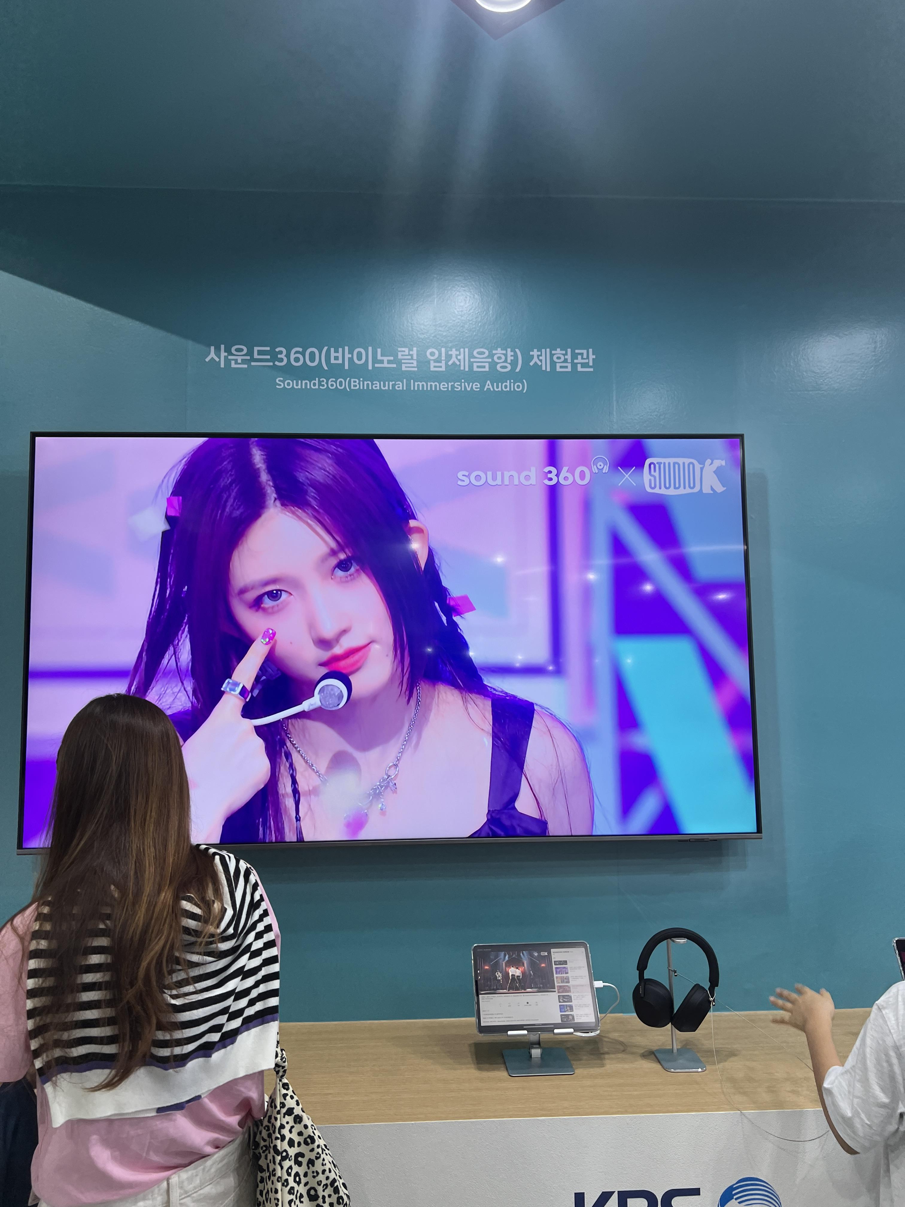 (8K HDR 직캠이 있다고 해서) 가장 먼저 방문한 곳은 KBS 부스였다. TV도 물론이지만 영상 해상도는 놀랍긴 했다. 가까이에서 확인해도 그 선명도는 대단했고, 격렬한 움직임에도 흐트러짐이 없었다. 이런 해상도로 내셔널지오그래픽 다큐멘터리를 보면 몰입감이 극대화 될 것 같았다. 그 옆에 사운드360 체험관이 있어 오디오도 들어봤는데, (Dolby 사운드보다는 덜 했지만) 방송국에서 음악방송에 있는 것처럼 느껴지기도 했다.
