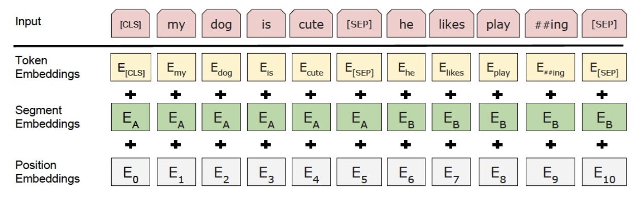 - Token Embeddings : 단어별로 Embedding Vector
