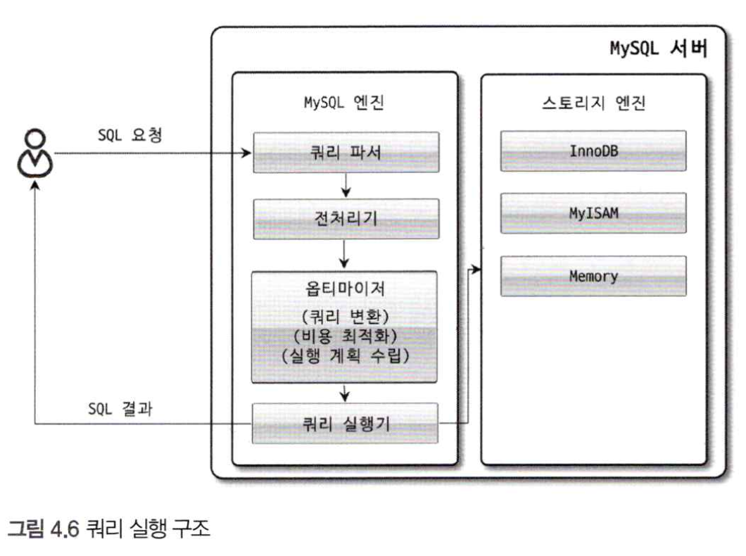 - 커넥션 핸들러, SQL 파서, 전처리기, 옵티마이저 등