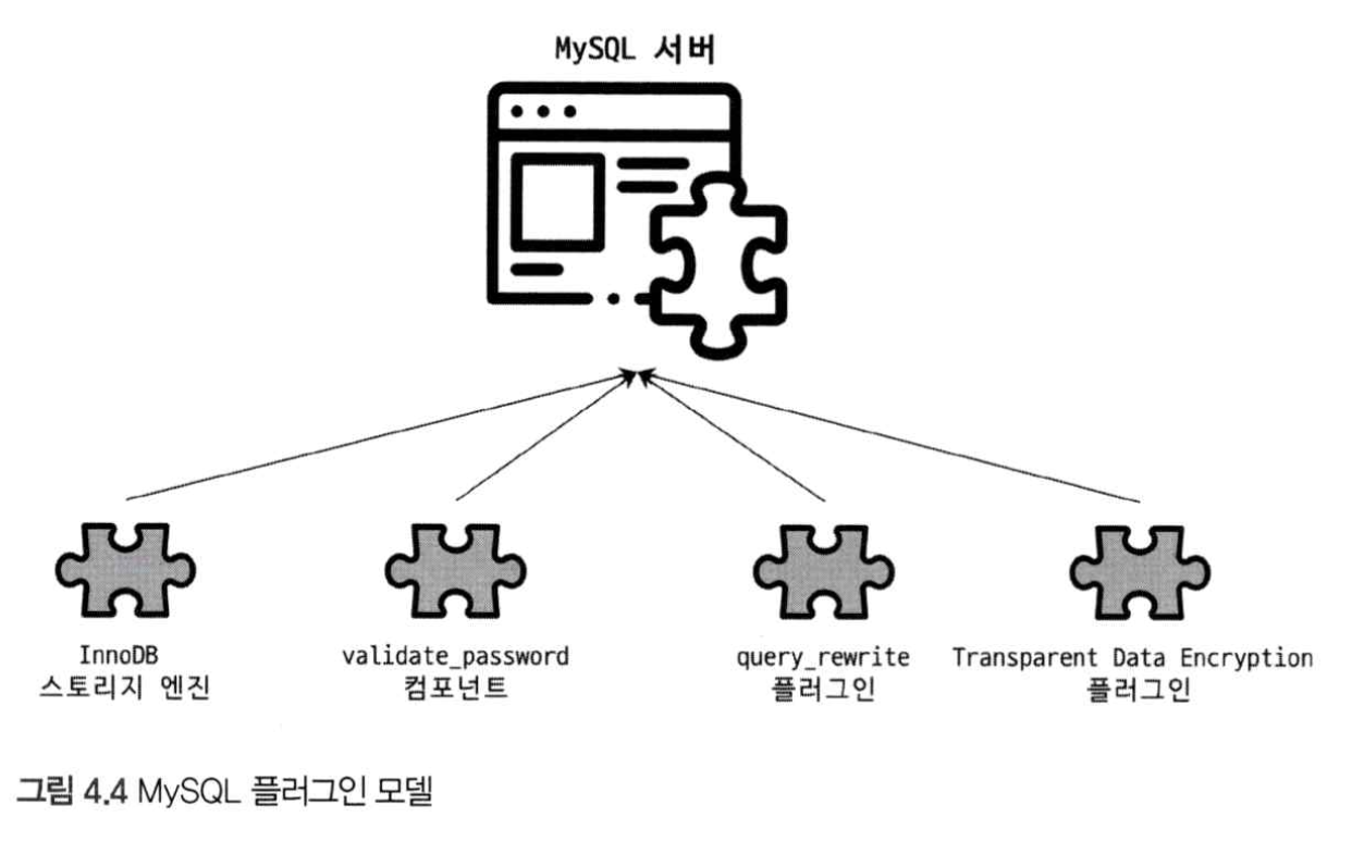 - 플러그인은 오직 MySQL 서버와 인터페이스 할 수 있고, 플러그인끼리는 통신할 수 없다.